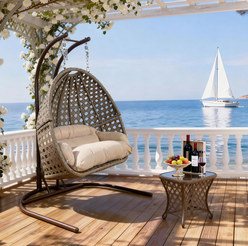 UV-stabilized PE rattan resists fading, cracking, and moisture, while the powder-coated steel frame prevents rust and corrosion. Built to withstand intense sun, heavy rain, and humidity, so you can enjoy your swing chair year-round in backyard or garden environments.