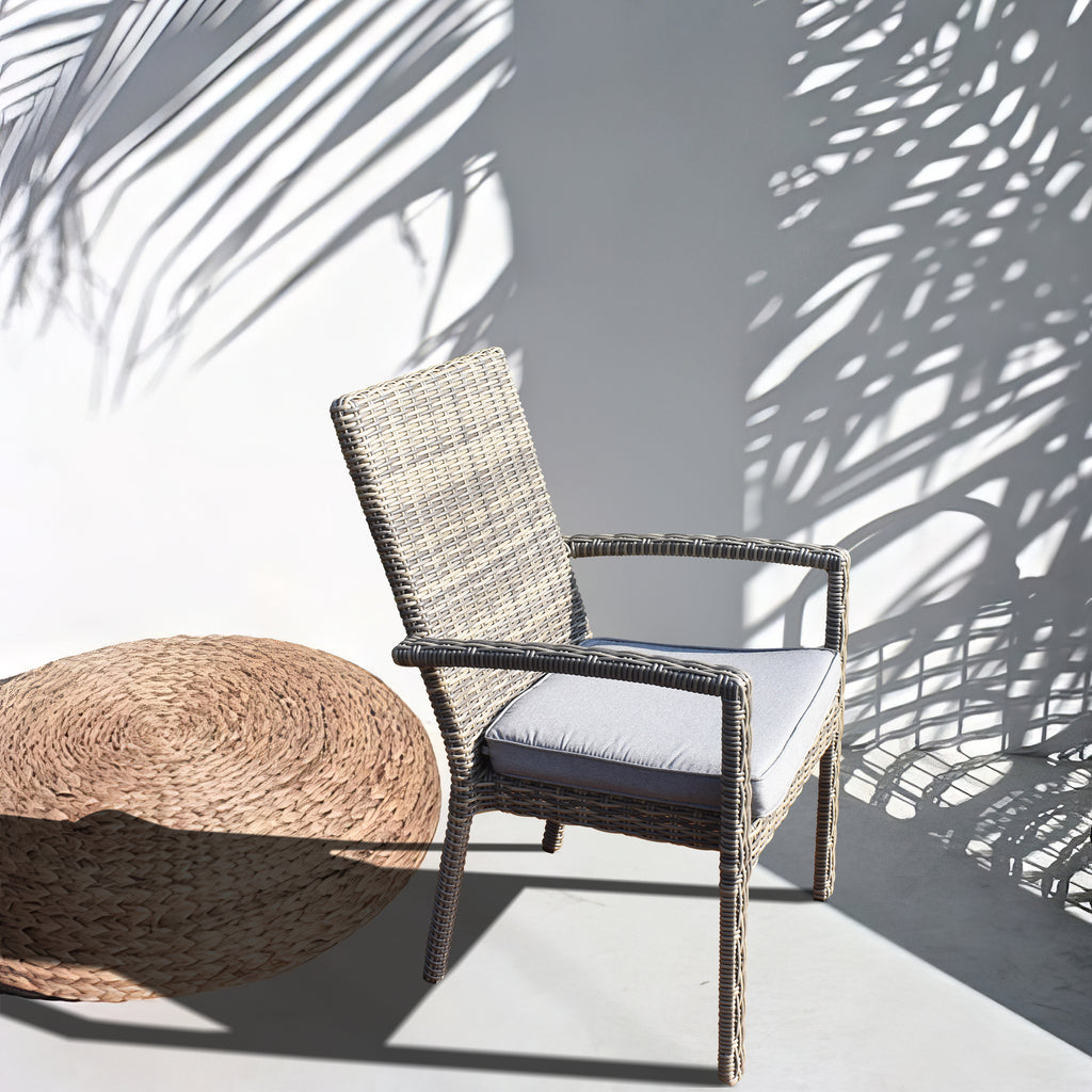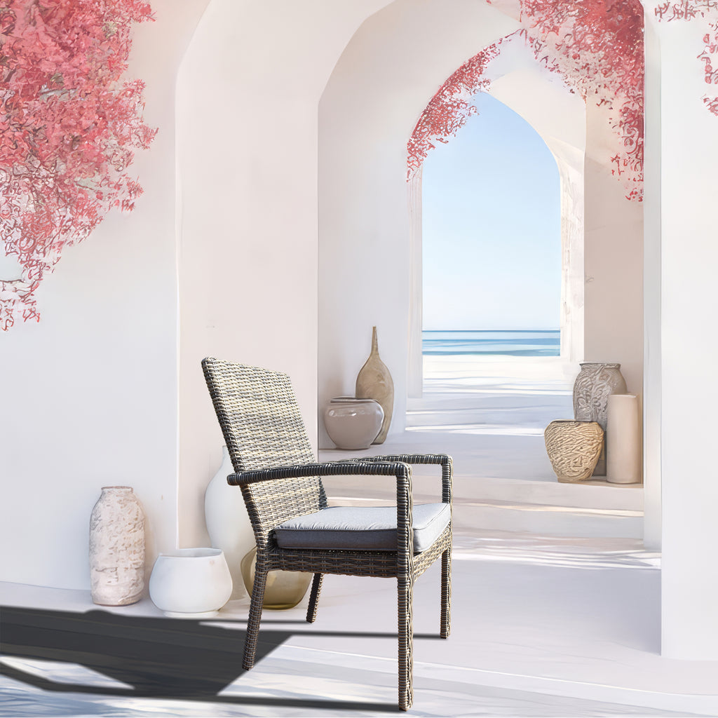 DTY2501 Light Grey Wicker Outdoor Armchair with Cushion – Modern Patio Weather-Resistant Lounge Chair