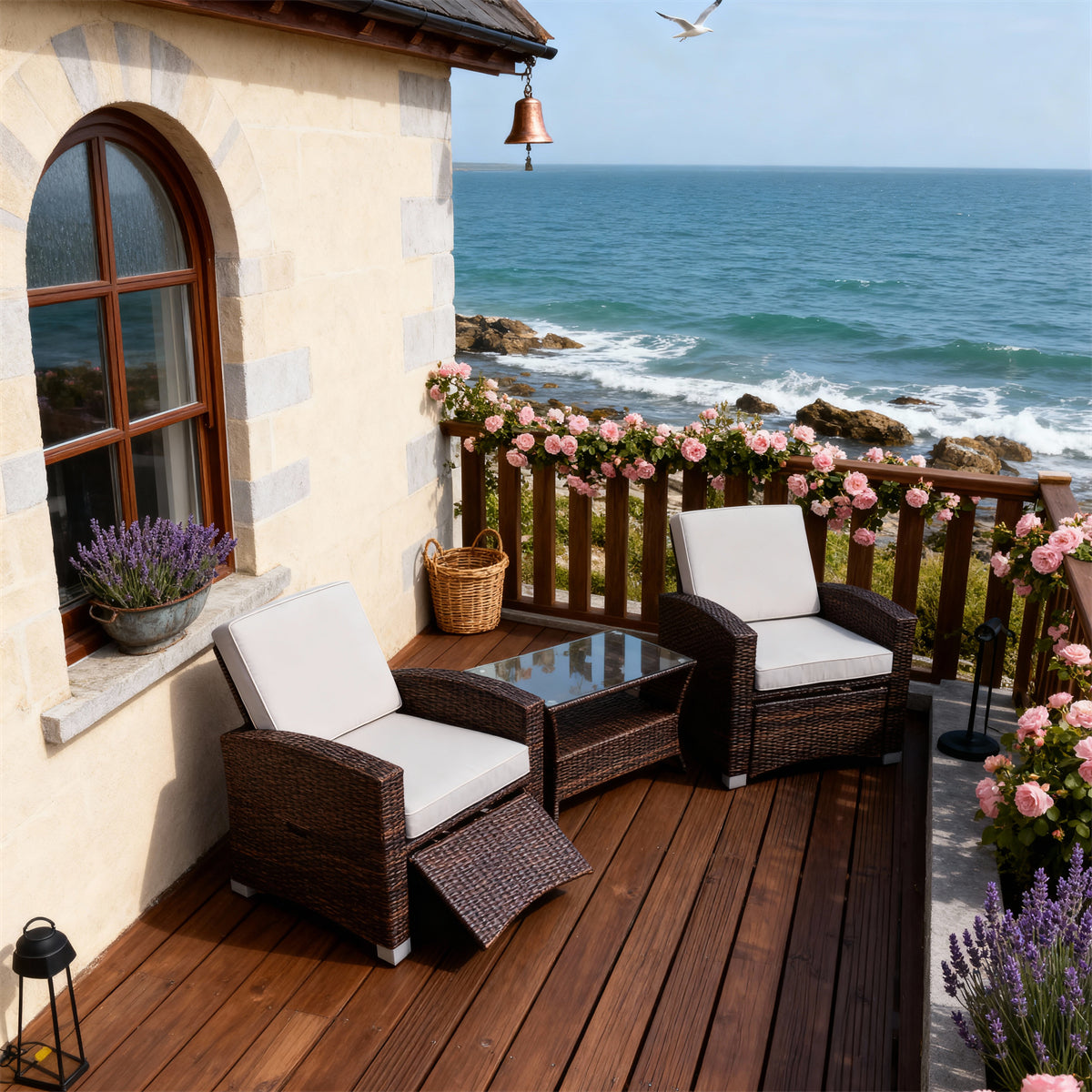 - 3-Piece Reclining Lounge Set for Coastal Pool Villa Relaxation! The 2 recliners + 1 table configuration fits 2 guests—ideal for poolside napping、boat-view reading or quiet sunset chats, turning your terrace into a cozy Maine luxury leisure hub.