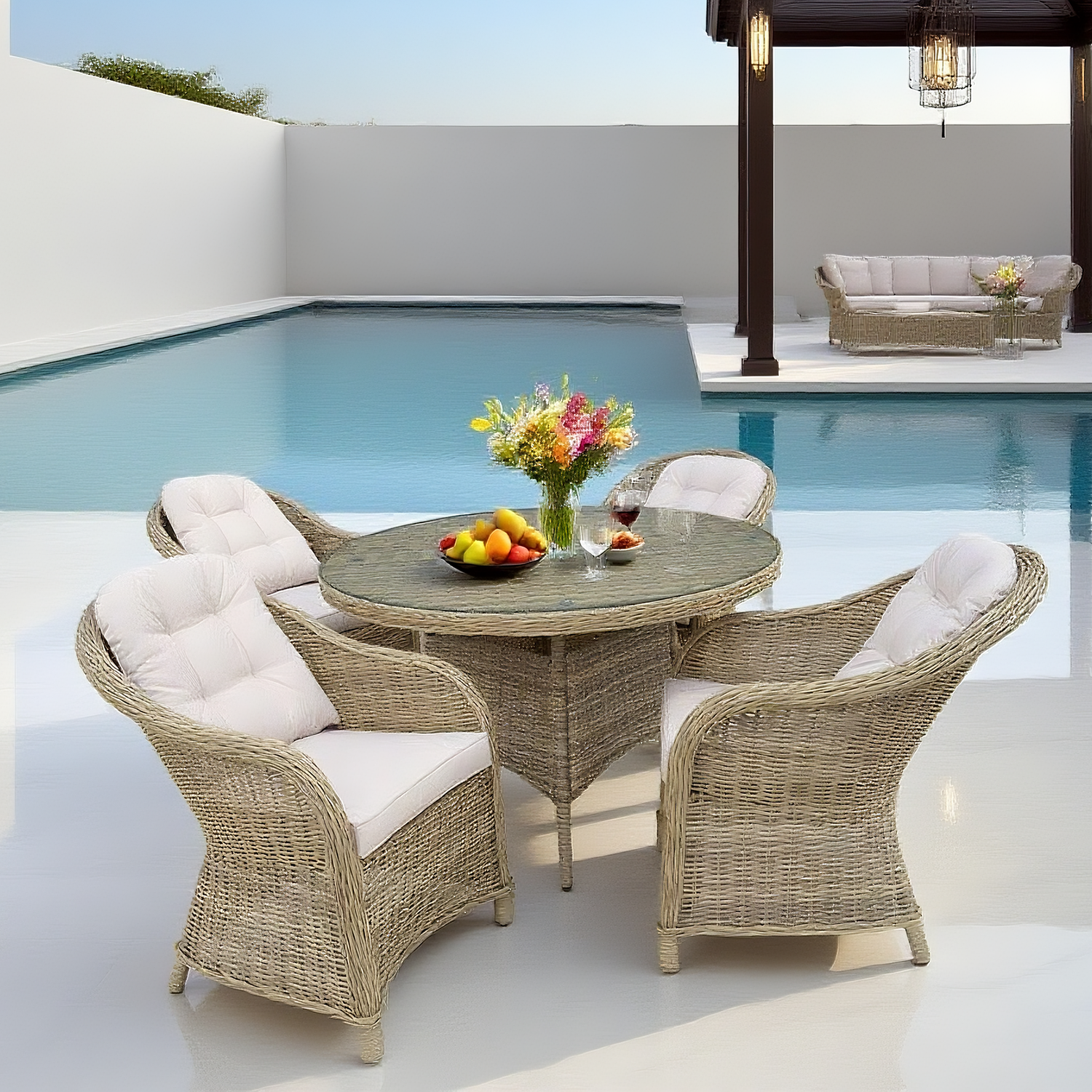 - French Luxury Aesthetic – Elevate Your Outdoor Space! The light beige wicker and cream tufted cushions create a sleek, romantic look that harmonizes with poolside villas, garden terraces, or French - inspired outdoor decor. Instantly adds a touch of elegance and relaxation to your outdoor living area.