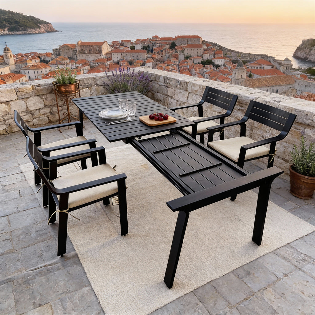 WLSF2571 5-Piece Black Aluminum Outdoor Dining Set – Croatian Coastal Patio Furniture
